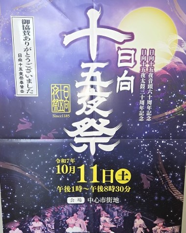 こんにちは、田中です。明日はいよいよ十五夜祭り!天気に少し不安が残りますが無事開催できそうで楽しみ…