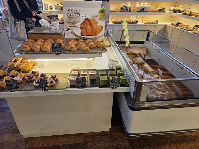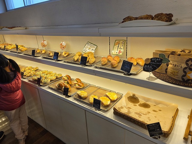 焼きたてのパンの香りがふわっと漂ってきて、あれを前にして素通りなんてできません。店内はすでに多くの人で賑わっていて、イートインコーナーは入店した時点でほぼ満席。人気ぶりがうかがえます。