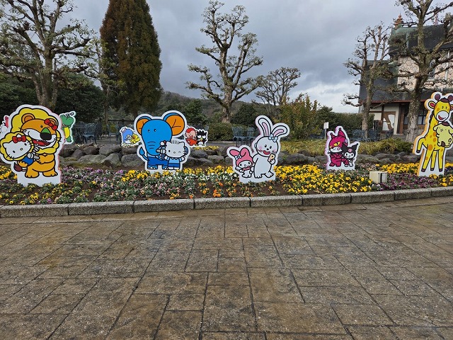 コラボ中ということで縁内はたべっこ動物のメンバーたちとサンリオキャラクターたちのパネルも飾られており、他にもキャラクターたちが園内を余すところなく飾り立てどこを見ても可愛いです。キャラクターたちはもちろんですがそれぞれの建物もコロンとした形で一寸の隙もなくかわいいが敷き詰められていました。