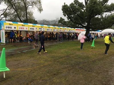 会場に着く頃になっても依然、雨・雨・雨。誘導された河川敷の駐車場から大会会場まではシャトルバスでの移…