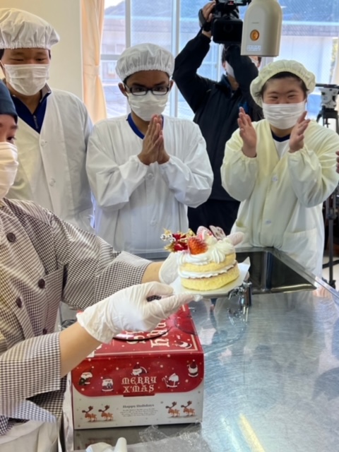 2021年12月10日(金)9時30分より、日向ひまわり支援学校にて毎年恒例の「クリスマスケーキ作り」を行いました。
