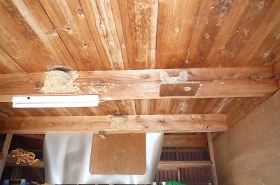 倉庫の天井に早くもツバメ飛来、3箇所の巣