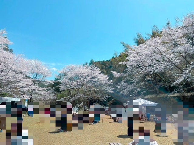 風で満開の桜が青空に散り揺れる中、沢山のお客様が来場していました♪