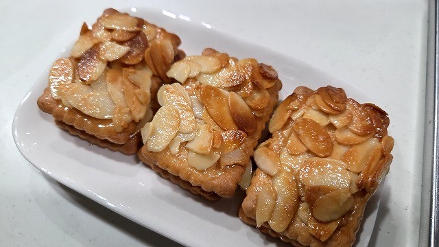 クッキー生地にキャラメリゼされたアーモンドスライスをのせて焼き上げた、フランスの伝統的なお菓子です。