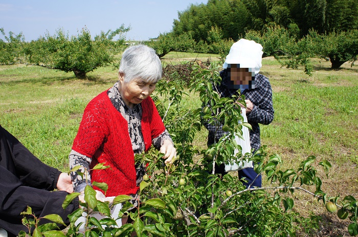 「ここ(さくらの里)に来て、この歳になっても初めての事がいっぱい。梅ちぎりも初めて。」