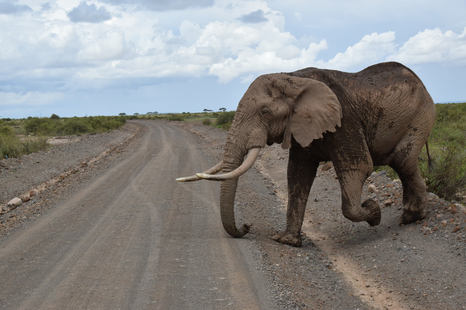 さすがアフリカ道路を横断する動物のスケールが違う。